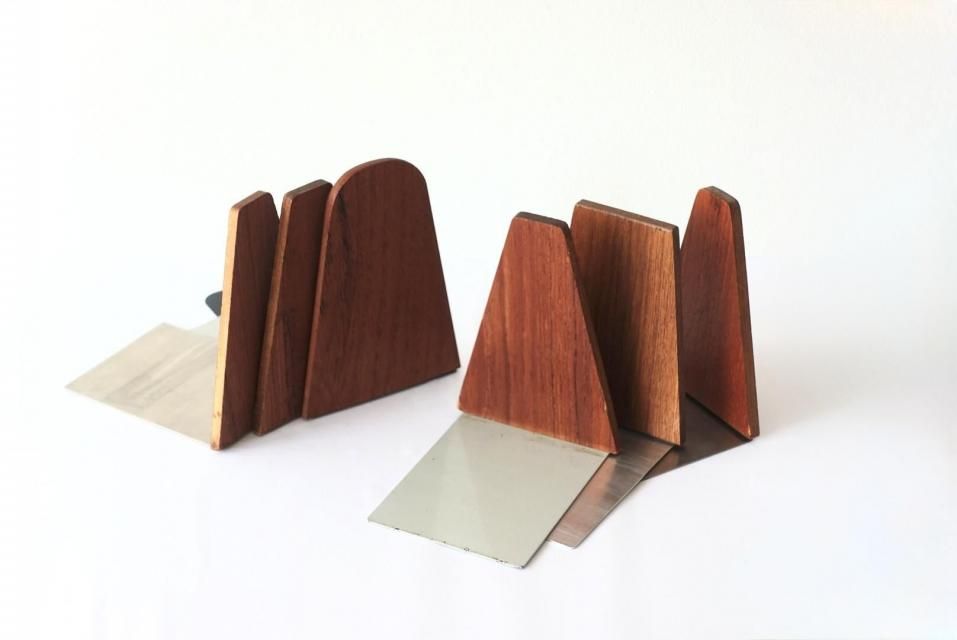 チーク材を使用したシンプルで暖かみのあるデザインのブックエンド。