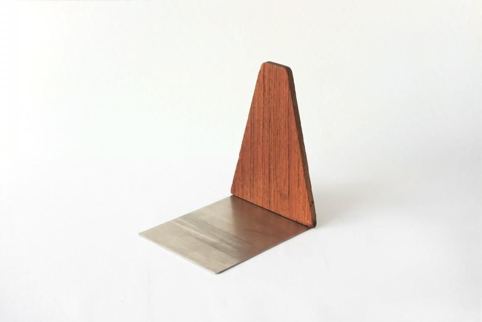 チーク材を使用したシンプルで暖かみのあるデザインのブックエンド。