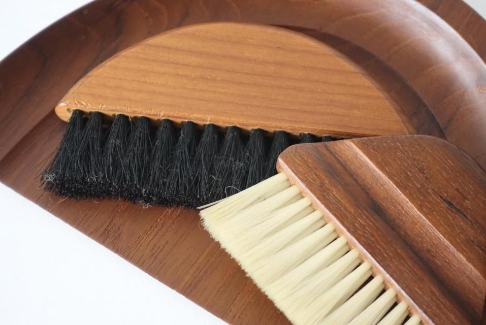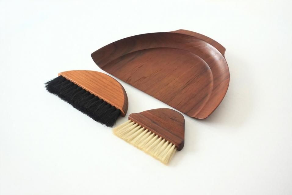 チーク材を使用した卓上ほうき&ちりとり 3点セットです。