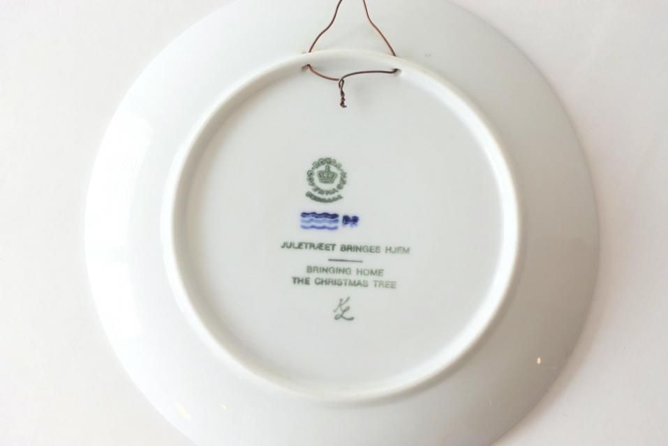 こちらは1980年に発売されたイヤープレート「BRINGING HOME THE CHRISTMAS TREE(クリスマスツリーをもって家へ)」です。79年の続きとなるこちらは 森で選んだツリーを自宅へ大事に持ち帰っている場面を描いています。